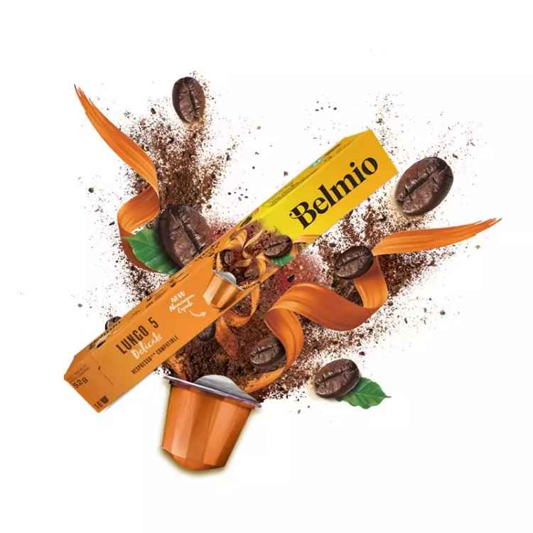 کپسول قهوه نسپرسو برند بلیمو belmio بلژیک مدل delicato lungo 5یک لحظه قهوه خارق العاده را تجربه کنید هر کپسول Belmio® به شما نوید انفجار طعم و عطر قهوه تازه آسیاب شده را می دهد. به لطف کپسول های آلومینیومی کاملاً قابل بازیافت ما، می حتوانید هر لحظه از لحظه قهوه خود را، از دانه تا فنجان، لذت ببرید. کپسول های آلومینیومی 100% قابل بازیافت سازگار با Nespresso®* قهوه پایدار تایید شده ساخت بلژیک