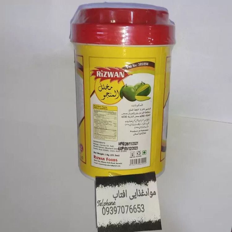 ترشی انبه روغنی رضوان تاریخ انقضا بالا ساخت پاکستان🇵🇰 یک کیلویی حاوی ادویه های خاص پاکستانی دارای تندی و شوری بالا و بسیار چرب