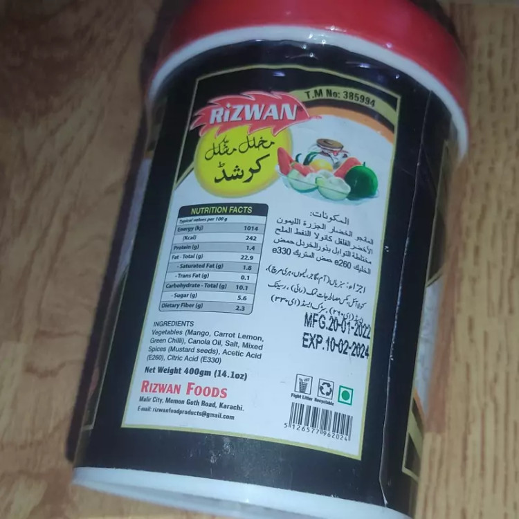ترشی انبه لیته روغنی بدون هسته رضوان 400 گرم ساخت پاکستان